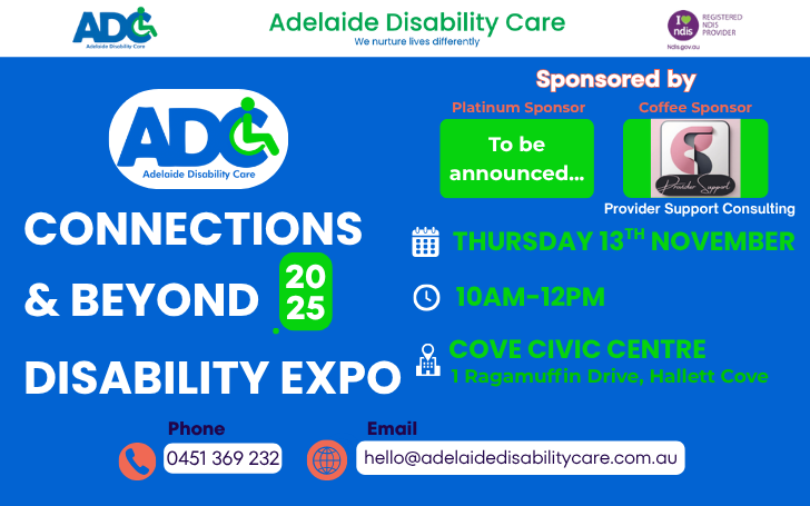 Be part of the ADC Connections & Beyond Disability Expo 2025 on Thursday, 13th November, 10 AM–12 PM at the Cove Civic Centre, 1 Ragamuffin Drive, Hallett Cove. This expo brings together a range of disability service providers, local businesses, and community organisations, creating a space to connect, share knowledge, and build your NDIS network. It’s a great opportunity for professionals, participants, and families alike to find out about the services and support available to you and your community.